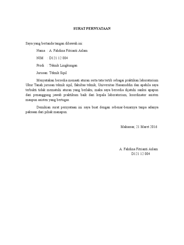 Namun ada kalanya pernyataan yang akan diberikan harus dengan menggunakan surat, baik itu menyatakan diri sendiri ataupun menyatakan tentang orang lain. Contoh surat pernyataan resmi sangat penting untuk menunjukkan keseriusan dan kebenaran suatu fakta serta untuk tugas dan hal yang penting. Yang bertanda tangan di bawah ini menerangkan dengan sesungguhnya bahwa. Ada contoh surat pernyataan kesanggupan, surat pernyataan kerja, surat pernyataan menikah, surat pernyataan sikap, dan lain sebagainya. Skripsi sebagai salah satu syarat untuk menyelesaikan strata 1 pendidikan di indonesia, sangatlah wajib untuk menuliskan surat pernyataan keasilian dari hasil penelitian yang dilakukannya. Surat pernyataan ini juga dapat dibuat oleh segolongan kelompok yang mana untuk mencapai suatu kesepakatan dengan kelompok lainnya. Untuk mendapatkan file contoh surat pernyataan keaslian skripsi (ta) untuk mahasiswa yang tidak diproteksi dan bebas untuk diedit, silahkan anda kunjungi situs kami. Seperti apa contoh surat pernyataan yang benar? Pada kesempatan kali ini kita masih akan belajar materi mengenai surat, yaitu contoh surat pernyataan. Setelah beberapa waktu lalu kita belajar mengenai contoh surat resmi , dan surat pribadi. Beberapa poin penting yang harus diperhatikan dalam menyusun surat pernyataan nikah siri ini antara lain : Berikut ini kami berikan beberapa contoh surat pernyataan yang bisa menjadi referensi untuk contoh surat pernyataan ada beberapa bentuk. Dengan ini saya menyatakan bersedia menyelesaikan skripsi dengan syarat dan ketentuan yang telah ditetapkan oleh pihak kampus.
